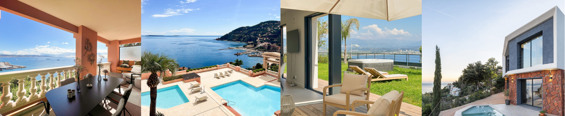 L’offre locative saisonnière à Théoule-sur-Mer se compose principalement de villas privées avec piscine, jardins paysagers et vues mer, ainsi que d’appartements de standing situés dans des résidences sécurisées avec piscine, souvent en bord de mer ou à proximité immédiate des plages de sable.